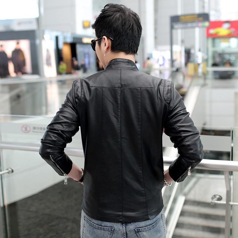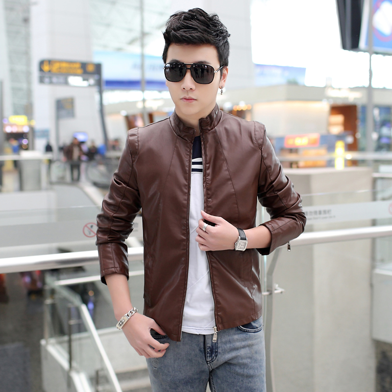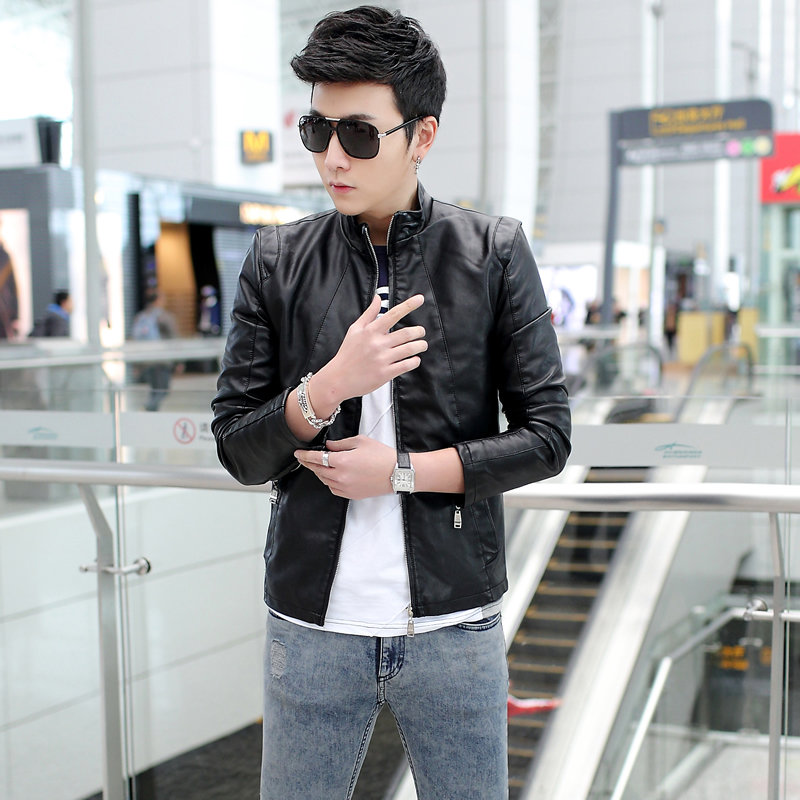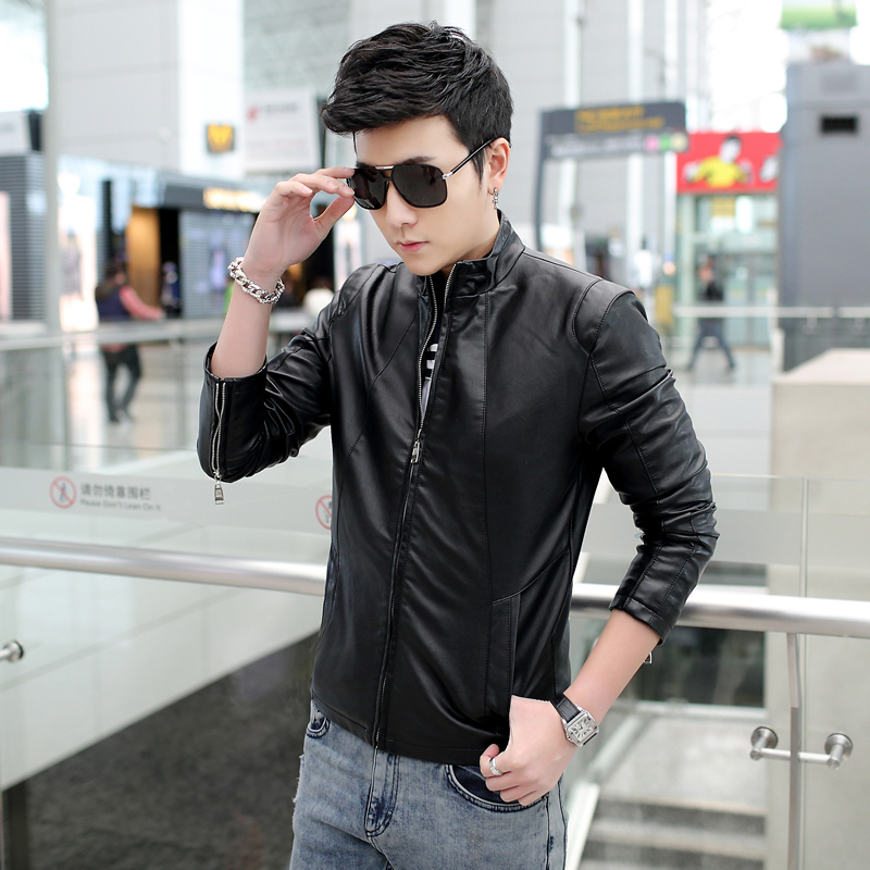 / 春季男士皮衣外套2017青年大碼機車皮夾克立領修身潮男