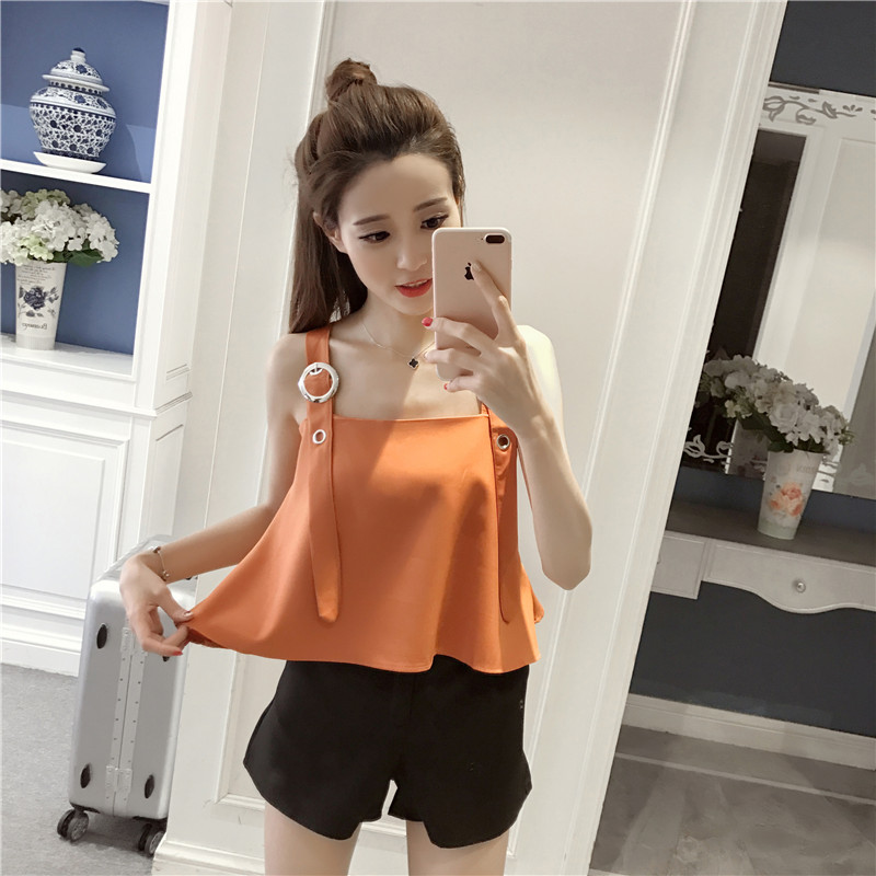 / 夏季新款女裝韓版小香風吊帶背心兩件套休閑高腰闊腿短褲套裝