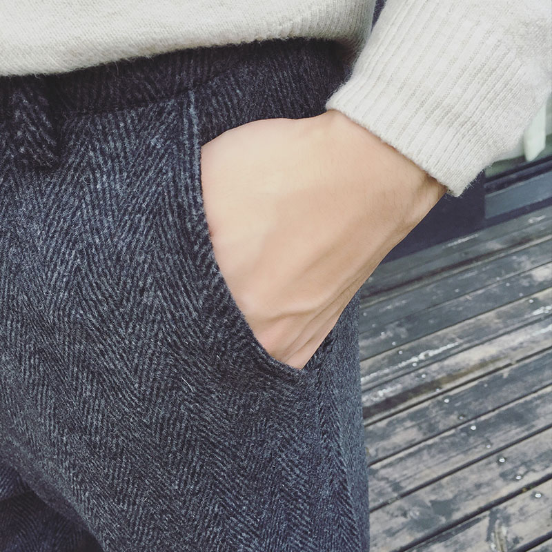 / 男裝韓版呢料加厚小腳哈倫褲錐形毛呢寬松束腳褲男