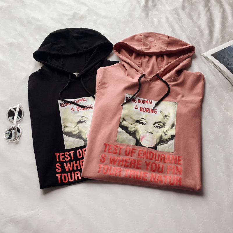 / 天天特價春夏韓版中長款連帽衛衣女寬松短袖印花休閑時尚潮連衣裙