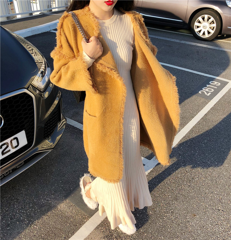 白色外套|黑色針織裙|杏色針織裙|駝色外套