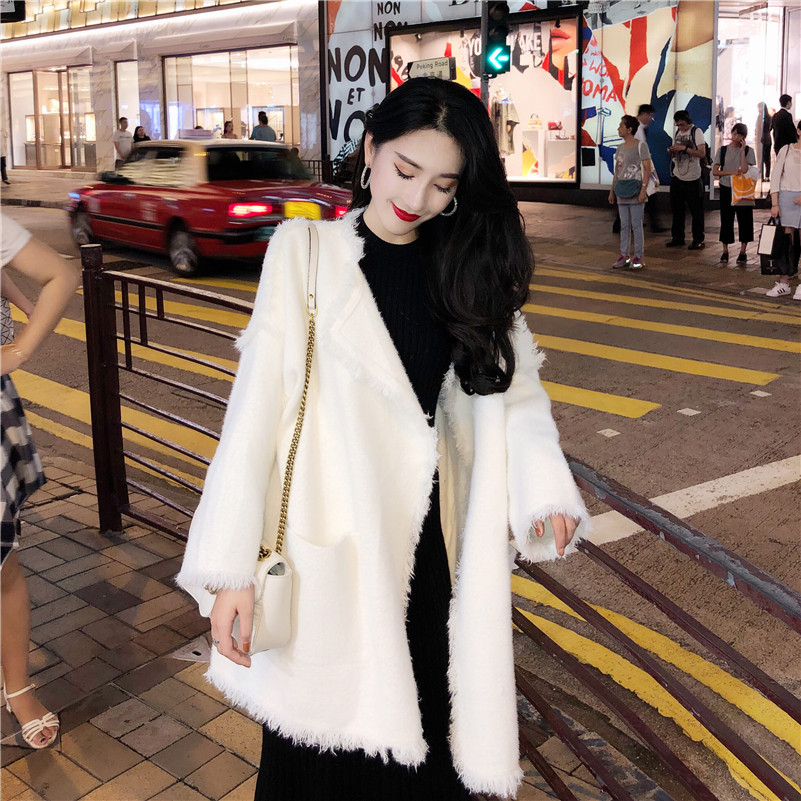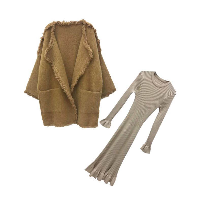 / 2018新款寬松厚毛衣開衫女學生長袖針織外套包芯紗長袖連衣裙套裝
