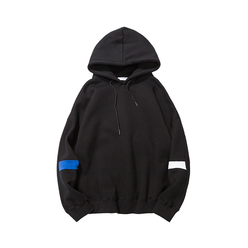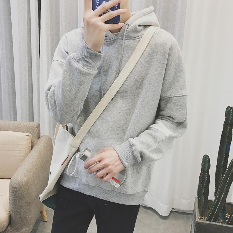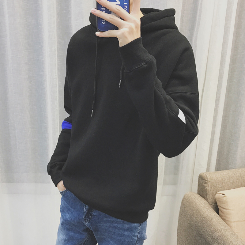 / 男裝袖子拼色韓版加絨保暖衛衣連帽套頭寬松衛衣男