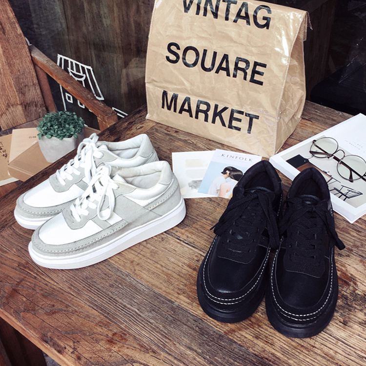 男裝韓版厚底磨砂皮拼色男士板鞋低幫運動鞋增高鞋