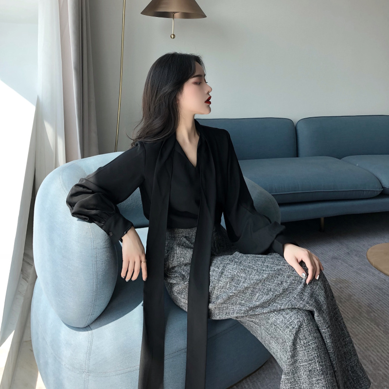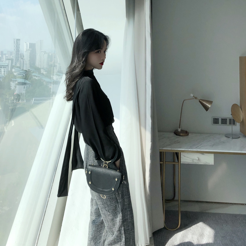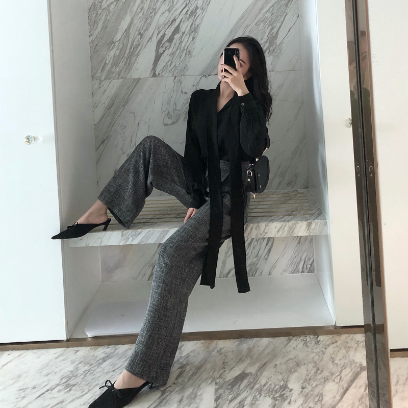 / 秋裝新款韓版慵懶風漏肩鎖骨上衣闊腿褲高腰復古直筒褲女時尚套裝