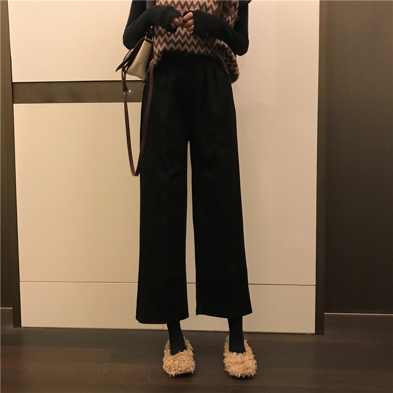 / 新款韓版兩件套復古菱格撞色V領毛衣馬甲百搭純色闊腿褲時尚套裝