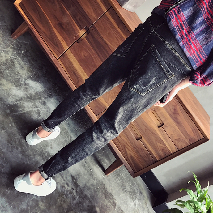 男裝質感水洗韓版男士哈倫褲修身小腳錐形牛仔褲