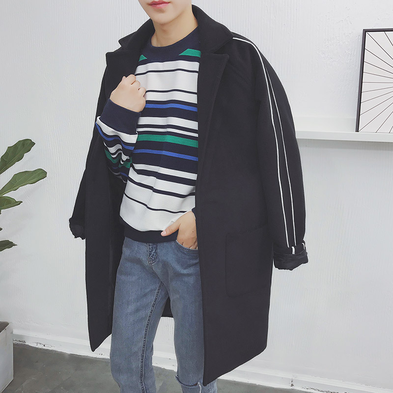 / 男裝韓版原創拼色單排扣呢料外套休閑男士寬松風衣
