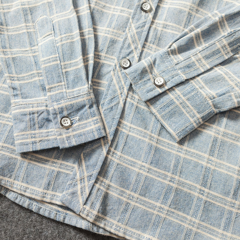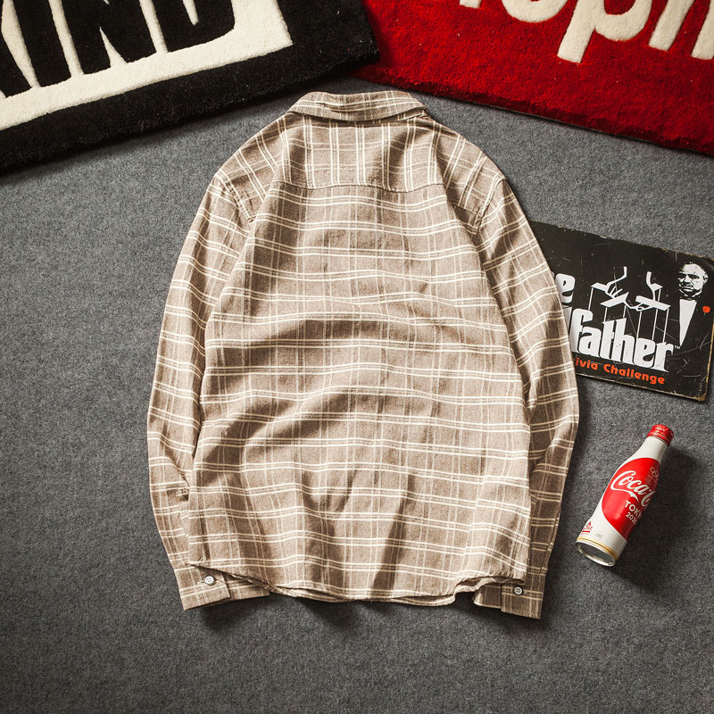 男裝日系復古彩格休閑男士長袖襯衫修身格子襯衣
