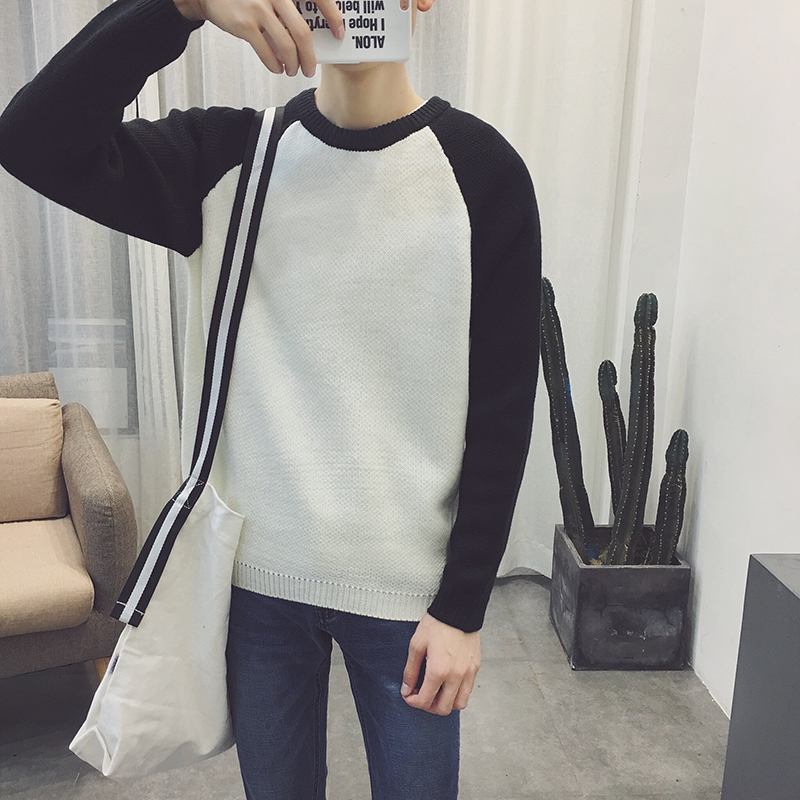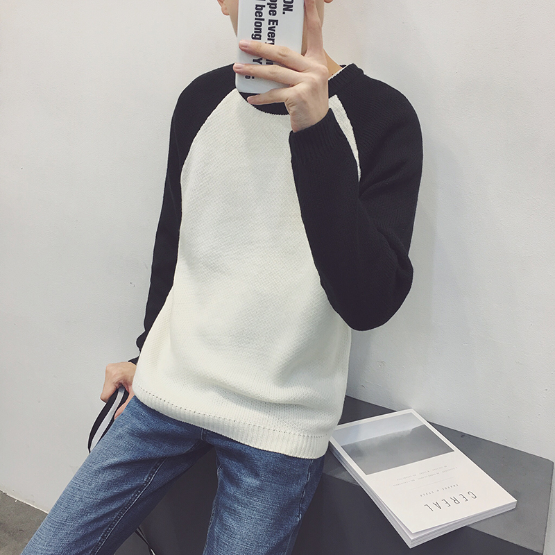 / 男裝韓版插肩袖圓領套頭男士針織衫加厚小清新毛衣