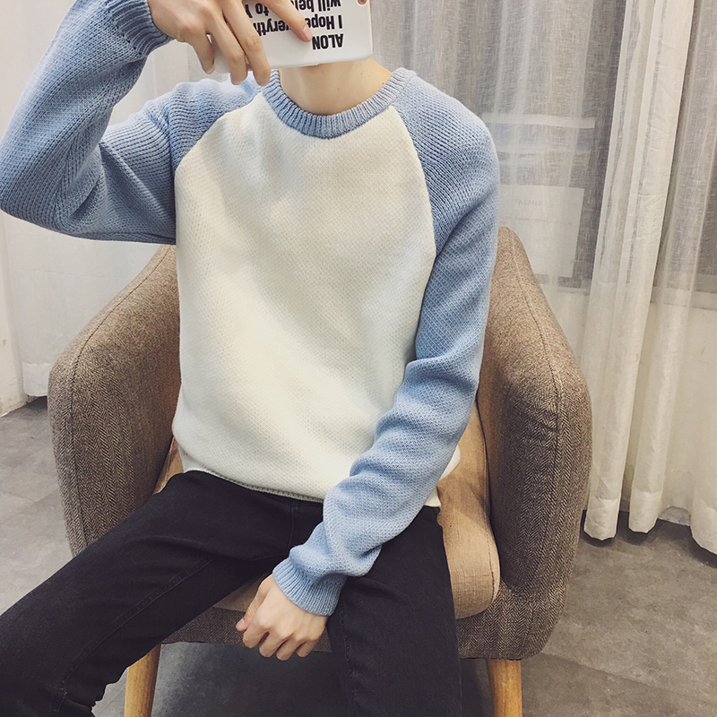 男裝韓版插肩袖圓領套頭男士針織衫加厚小清新毛衣