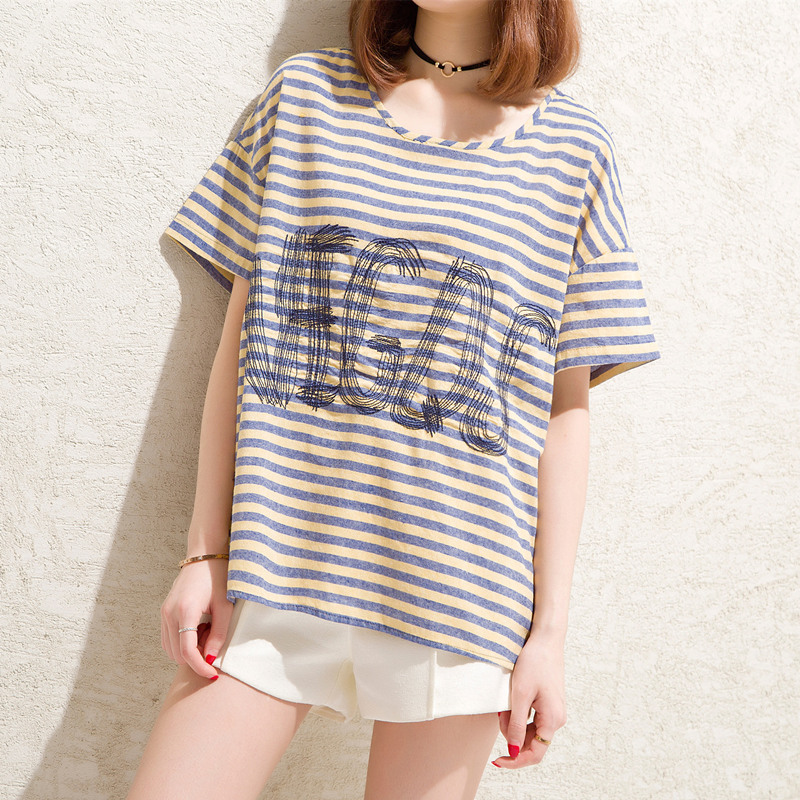 條紋t恤女韓版復古體恤衫短袖寬松小清新心機上衣女夏裝新款