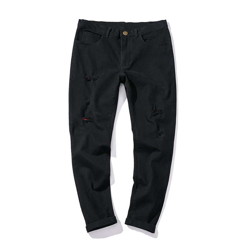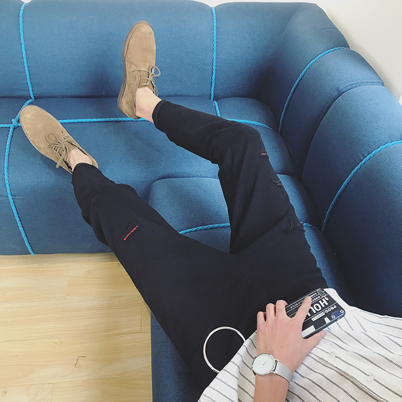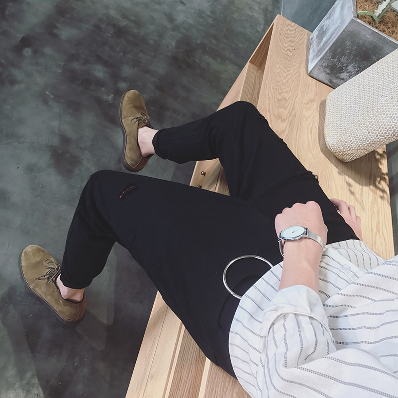 / 男裝破洞補丁韓版修身小直腳男士錐形休閑褲哈倫褲