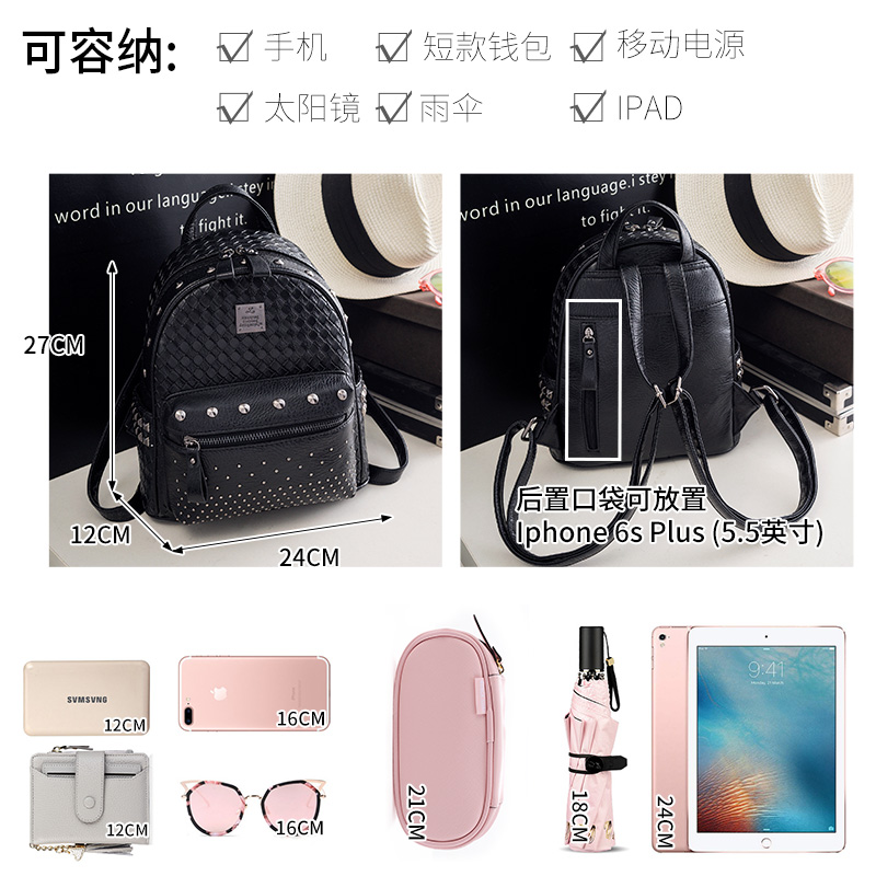 鉚釘雙肩包女韓版pu時尚個性百搭編織迷你女士包包新款潮背包