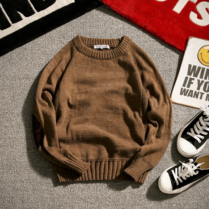 / 男裝兔毛混紡補丁毛衣針織衫復古男士打底衫毛衣