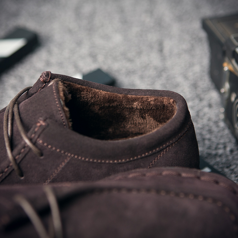 / 男裝日系翻毛皮男士加絨保暖棉鞋反絨真皮休閑鞋